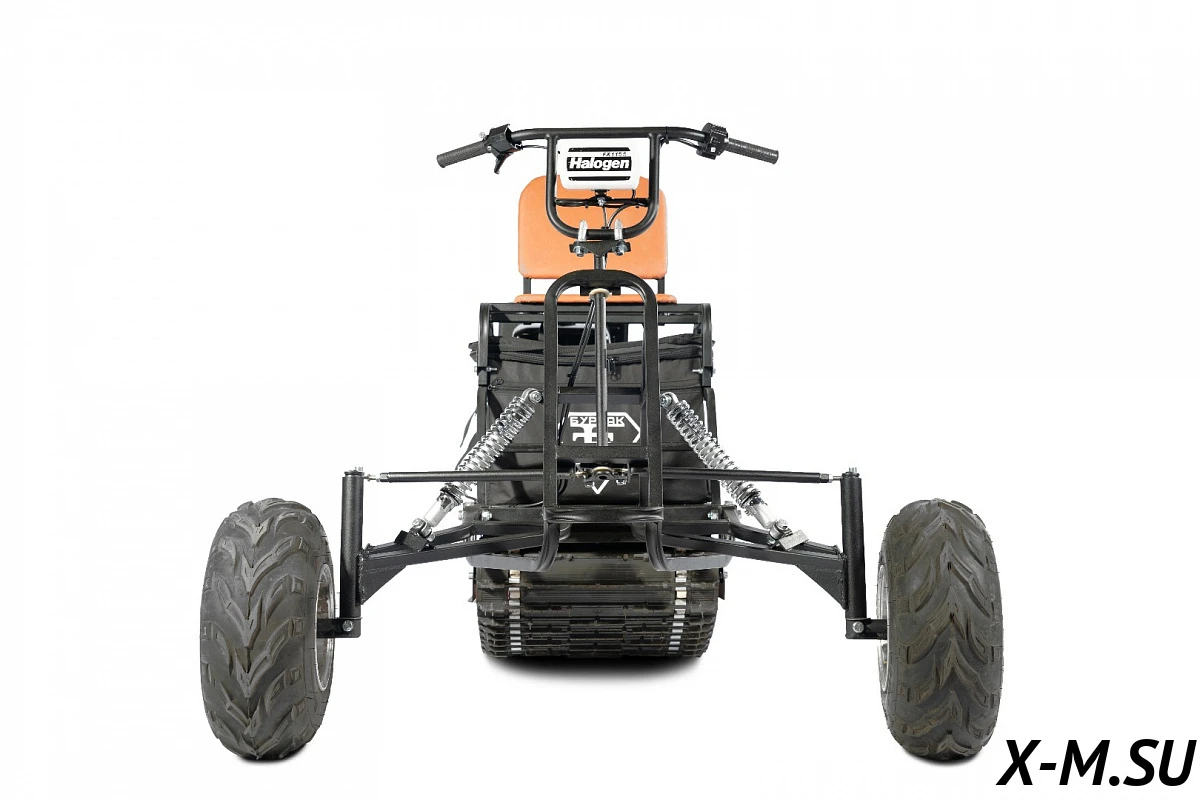 Комплектуется качественными колесами, амортизаторами импортного производства, складным креслом из 8ми мм бакфанеры, покрытой поролоном и обитой качественным кожзаменителем, светодиодной фарой. Светодиодная фара комплектуется фирменным пластиковым чехлом, позволяющим сохранить фару целой при транспортировке. Профилированная труба покрывается порошковой эмалью.